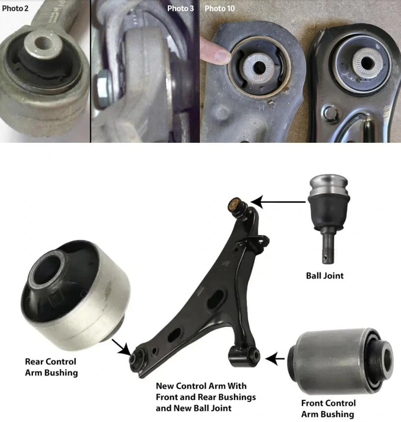 A kopás megerősítése után haladéktalanul cserélje ki a perselyeket, lehetőleg a tengely mindkét oldalán az egyenletes teljesítmény érdekében. Sok újabb járműben a perselyek be vannak nyomva, és nem külön cserélhetők, vagyis a teljes vezérlőkart ki kell cserélni. Keressen szakképzett szerelőt a feladatra, aki követi a gyártó nyomaték specifikációit, miközben a felfüggesztés normál vezetés közben van terhelve.