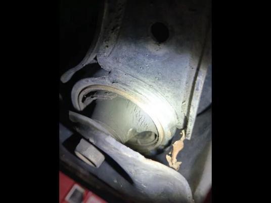 (Példák tipikus felületi repedésekre a Highlander vezérlőkar perselyeken – vegye figyelembe a finom, sekély vonalakat mély szakadások nélkül.)