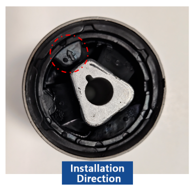 A beszerelés során ügyeljen arra, hogy a persely szilárd (nem hasadt) része egy vonalban legyen a jármű vízszintes előrehaladási irányával. Ha a perselyen tájoló nyíl van, ennek a nyílnak előre kell mutatnia a menetirányba.